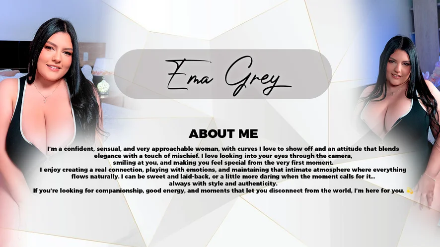 I’m a confident, sensual, and very approachable woman, with curves I love to show off and an attitude that blends elegance with a touch of mischief. I love looking into your eyes through the camera, smiling at you, and making you feel special from the very first moment.