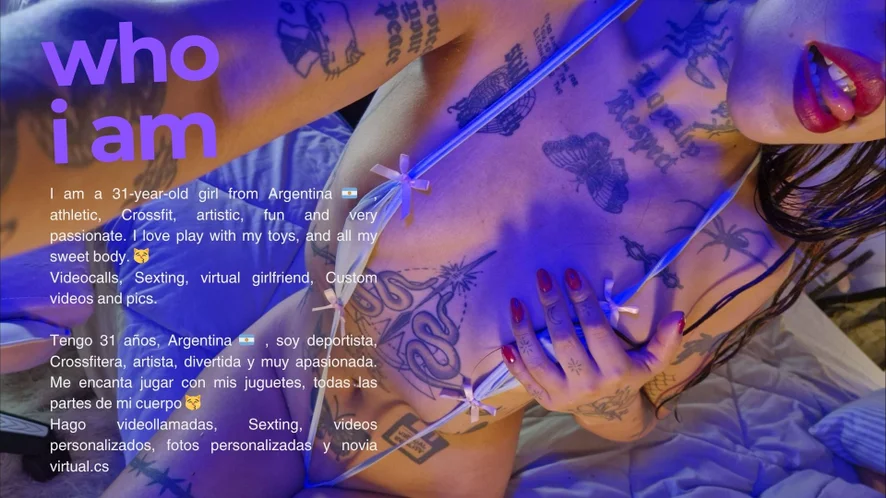 Soy vegana, amo la comida y cocinar. Miro muchas películas, anime y series. Estudio psicopedagogia. Por lo que me interesa mucho las ciencias sociales, todo lo que tenga que ver con el estudio de las personas en sociedad. Me encanta la intensidad, soy muy cariñosa, y eso lo traslado a mis transmisiones, siempre me vas a ver moviéndome, cambiando de poses cada 3 minutos. 🤣 Saltando, parada, sentada. Siempre en movimiento.