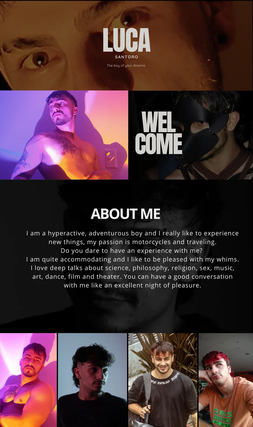 Hey, my name is Luca Santoro, I'm your versatil boy, I love exploring and making you feel very special, you'll see how much fun we're going to have with Morgan, or just you and me...
