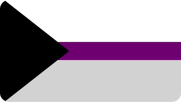 There is a black triangle protruding from the left side of the demisexual pride flag. It is lined with thick white lines at the top, thin purple lines in the middle, thick gray lines at the bottom. Similarly to its sister flag, the black means asexuality, the gray demisexuality, the white sexuality, and the purple community.