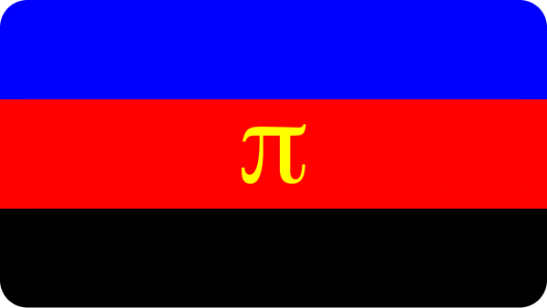 The polyamory flag was made by Jim Evans as far back as 1995. The blue stands for openness and honesty of all parts involved, the red for love and passion, and the black is to show support for those who cannot come out as polyamorous. The pi symbol in the middle comes to say that just as pi itself goes on indefinitely after the decimal, there are infinite partners available for those who are polyamorous.