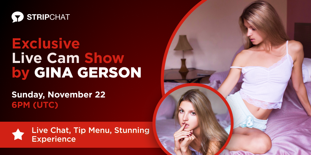 If you needed another enticing cam show by a top-notch pornstar to end your week on a happy note, here you have it! Stripchat is bringing pornstar Gina Gerson to your screen on November 22, 6 PM (UTC). Turn on notifications here to be sure you don’t miss this must-see event.