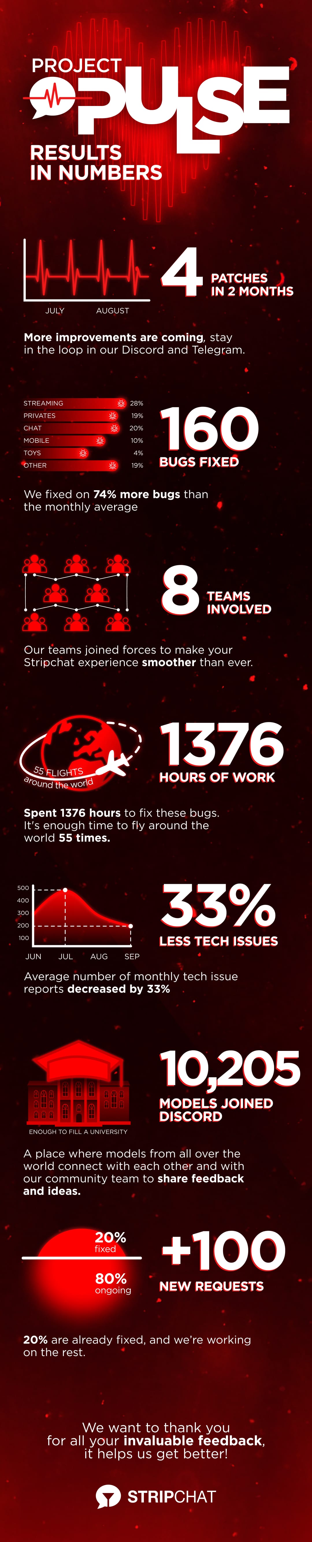 Over the past few months, we have been working hard on Project Pulse, a major effort to fix the most frustrating issues and make Stripchat a better platform for you.