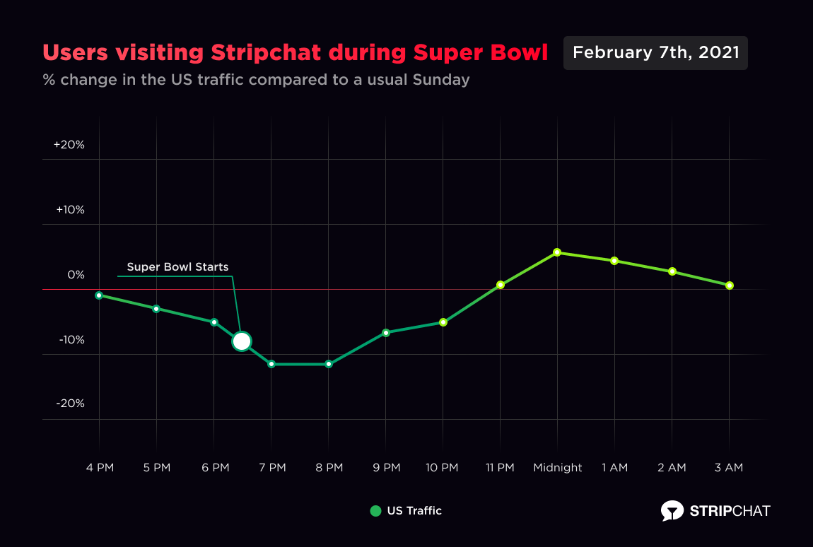 Stripchat traffic from the US falls and rises during the Super Bowl